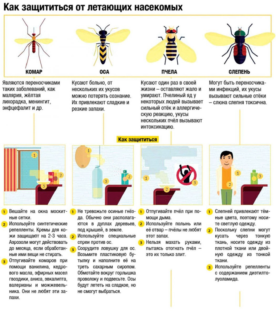 Избегайте контакта с осами, пчелами, шмелями и шершнями их укусы болезненны и могут вызвать аллергическую реакцию и даже нанести ребенку психологическую травму. Держите в аптечке средство для лечения укусов насекомых