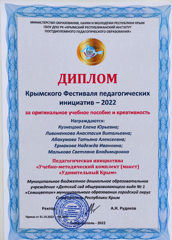 Муниципальное бюджетное дошкольное образовательное учреждение «Детский сад общеразвивающего вида №1 «Семицветик» Муниципального образования городской округ Симферополь Республики Крым